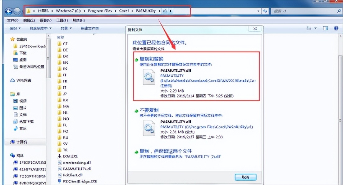 把CDR2019破解文件粘贴到C:Program FilesCorelPASMUtilityv1文件夹里面替换掉就可以了