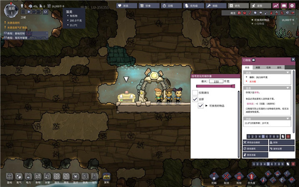 卡路里:这里显示可用的卡路里以及食粮数量,每名人员都有其所需摄入的卡路里量,只要达标,人员才能够正常工作。