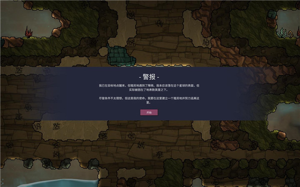 任务目标:缺氧处于屏幕的左上角,以黄色字体标示出任务目标。任务目标是“发展方向”,一般是建造指定的建筑物。