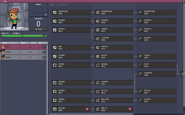 工作栏:管理安排人员的工作;查看人员的健康;查看日常报告;进行科技研究(必须建设研究中心)。