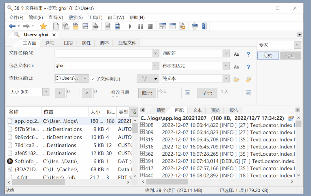 文件内容搜索相较于直接搜索文件名要困难得多,不同的文件格式、压缩包里面的内容怎么处理、文件更新了怎么处理等等,一整套流程下来,由于软件处理方式都不同,体验也各有千秋。像是比较出名的软件有AnyTXT、归海数据搜索、XSearch、TextSeek、FileLocator等。