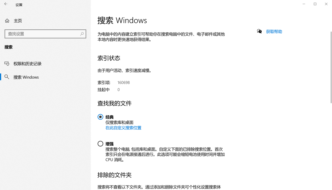 在全文搜索之前,现在软件的主流做法是先建立一段索引文件,就像是编了本“文件字典”,以后按图索骥找起文件来就方便许多。在Windows系统里面也有自带的全文搜索,在设置里面可以打开,就可以不使用第三方软件了。