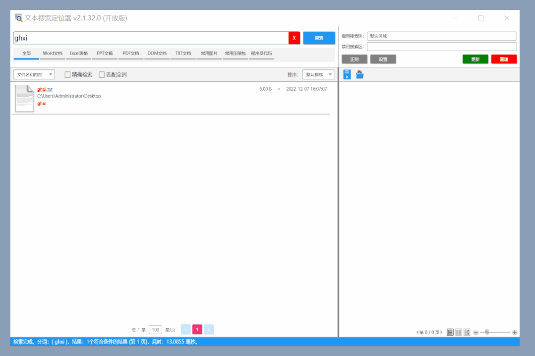 建立内容索引需要占用空间和时间,很多人不喜欢花上等待的时间。那有没有不需要建立索引就能用的?有,其中FileLocator是做得比较好的,它并不需要像其他软件那样建立完整的索引才能使用,安装之后,直接搜索就行,缺点就是,需要选择一下搜索范围,范围大了之后,搜起来还是需要花上一点时间的。