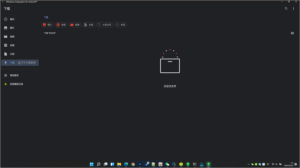 首次安装好 WSA 安卓子系统,然后安装好应用,如果运行任何应用都没有反应的话,可能是安卓子系统没有启动,可以运行 WSA – 点击下 “文件” 功能,然后就会启动了子系统了。