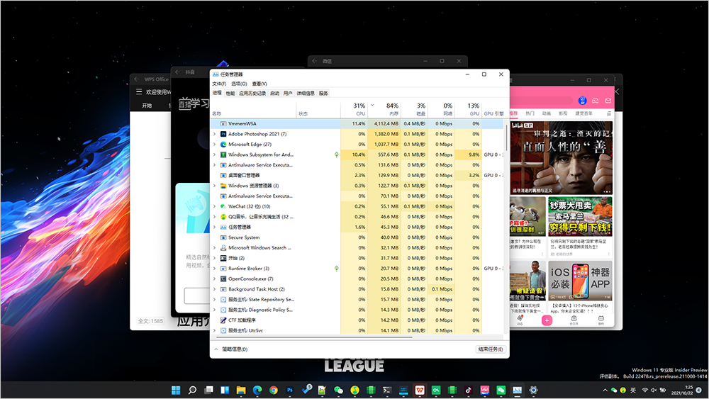 不过在开发者选项里面看到,默认给安卓子系统好像分配了 6.3G 内存,也就是最高只会占用 6G 吧,内存不够用就杀后台,应该就是这样。