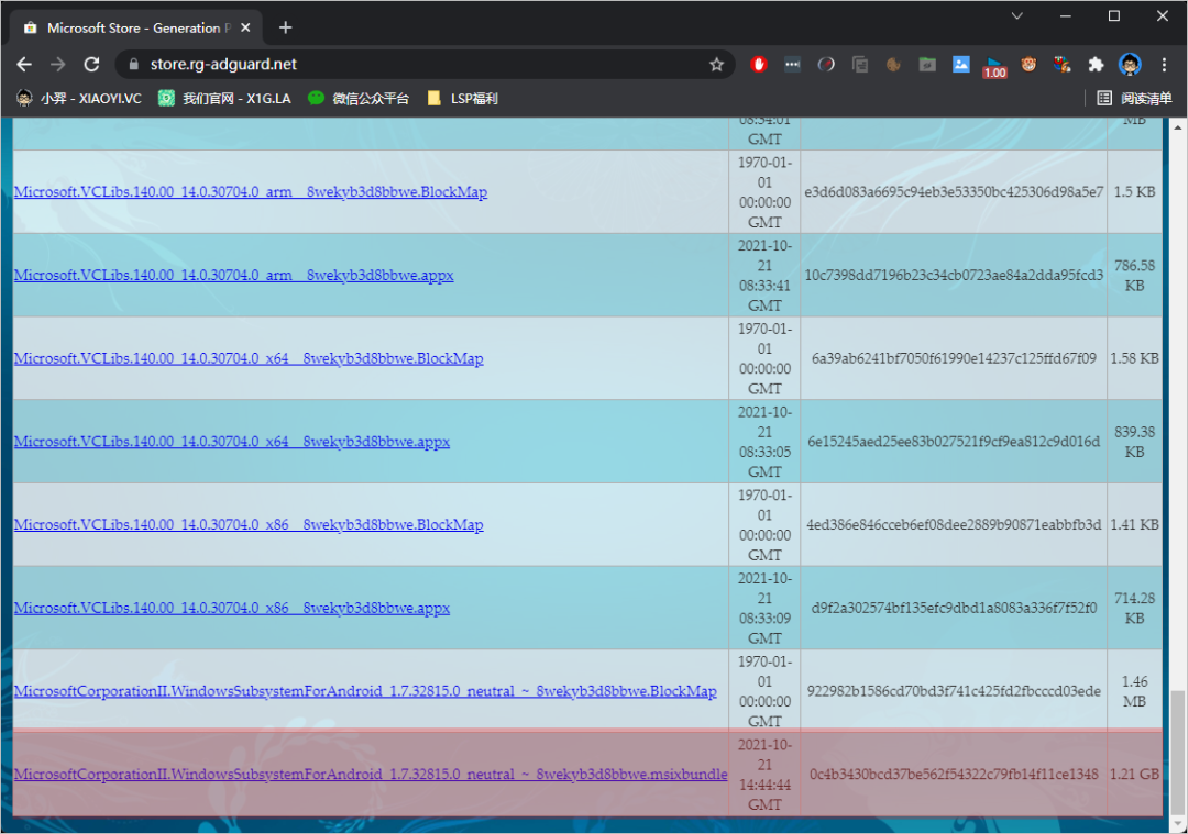 5.下拉 adguard 网站页面到最下面,找到一个 1G 大小左右的文件,点击下载 Msixbundle文件;