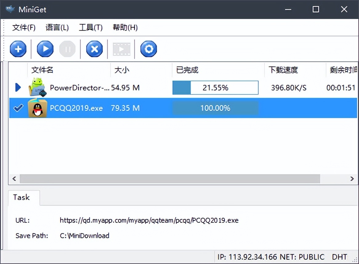 - uGet:Aria2 + Curl 双引擎,支持HTTP / BT / 磁力。