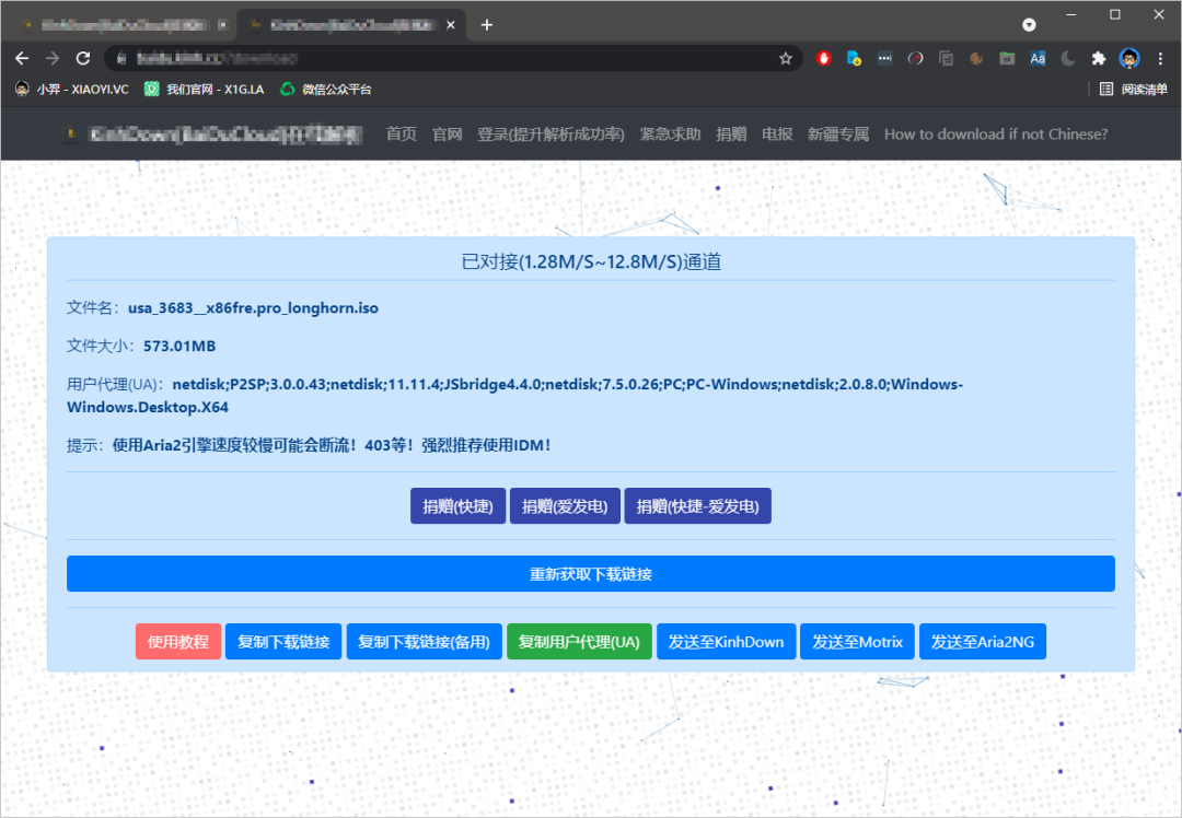 获取高速下载链接,需要搭配 IDM、Xdown、Aria、Motrix 等支持 UA 的下载工具。根据你自己喜欢来选择下载工具了,这里锋哥用的是 Xdown 下载软件。