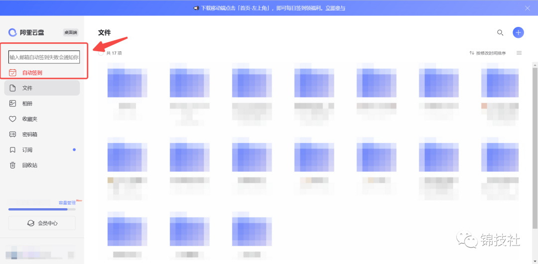 安装成功后,重新刷新阿里云盘网页端就可以出现自动签到框了,提交邮箱就可以使用了。