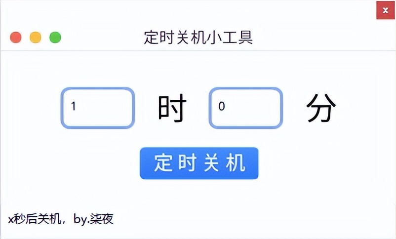 此款工具非常简单,在定时关机时,会提示倒计时,模仿了 Mac 的软件界面。