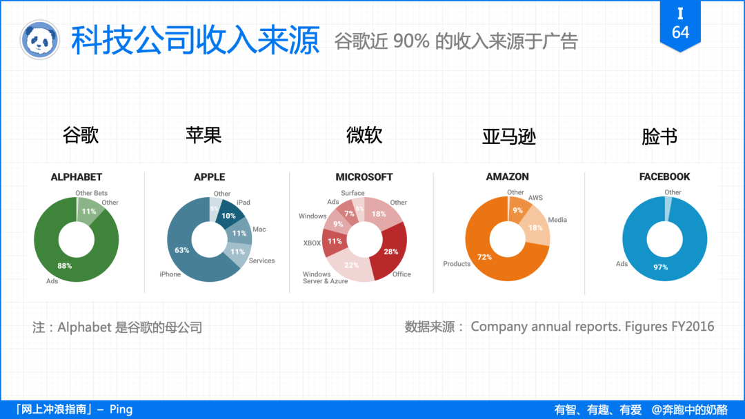 谷歌有将近 90% 的收益来源于广告,谷歌赚钱的方法,就是在提供服务的同时赚取广告费。