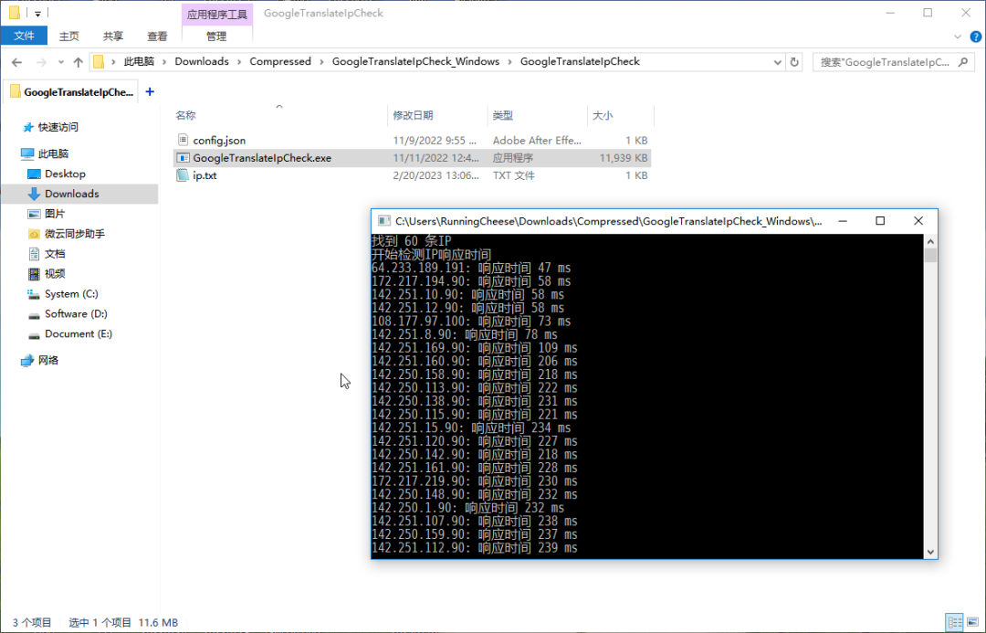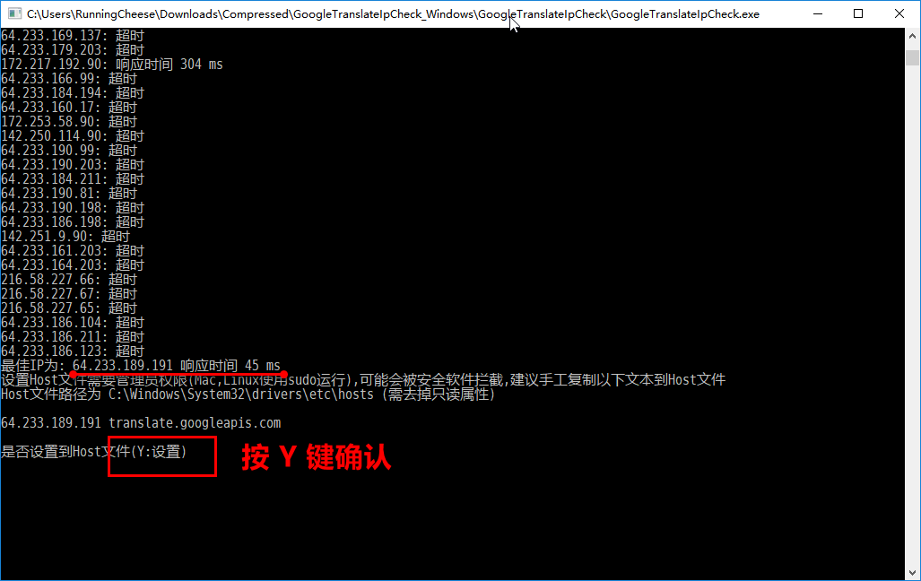 它的工作原理,是先扫描国内可用的谷歌翻译 IP,然后选出延迟最小的那个。