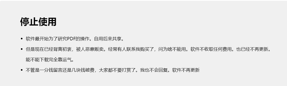 但是后面被人恶意贩卖,经常有人联系作者购买了,问为啥不能用。这样就背离初衷,软件本身是不收取任何费用,现在已经不再更新,直接停止使用。