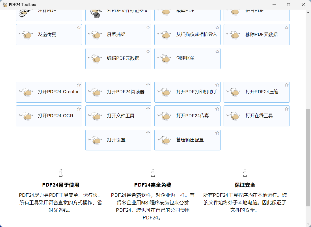 如果要论 PDF 功能的丰富程度,那么冠军就非这款 pdf24-creator 莫属了。