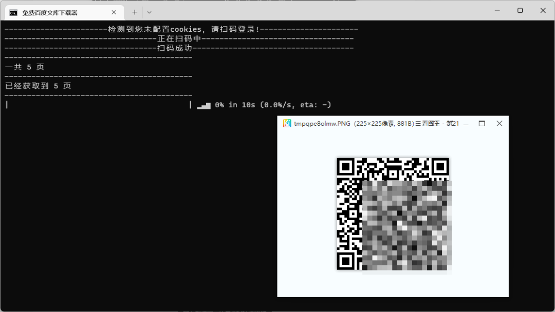 扫码登录成功后,界面上会有提示“扫码成功”,然后自动下载,下载完成后,按任意键合并成pdf。