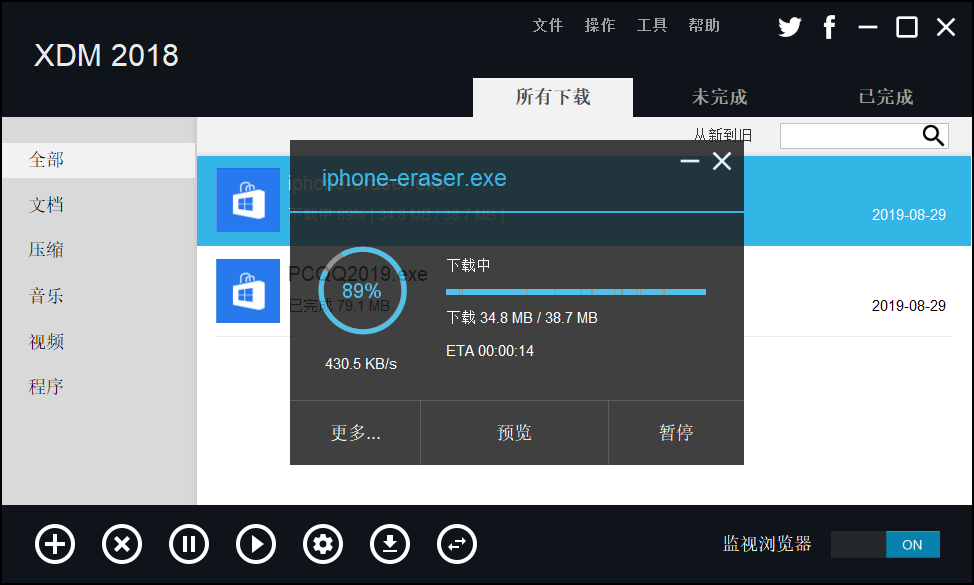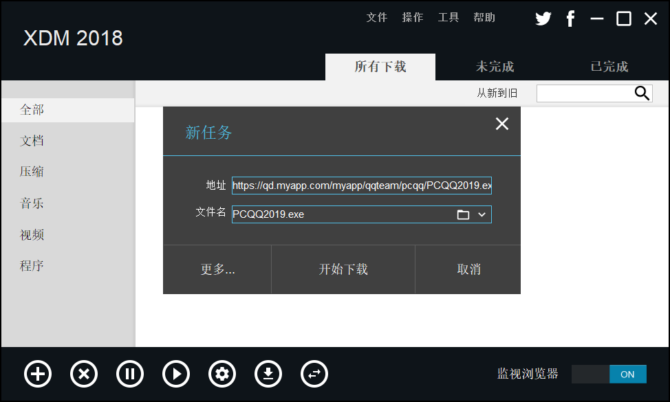 雷锋哥随便找了个下载地址,点击下载后「XDM 2018」就会自动弹出任务下载。