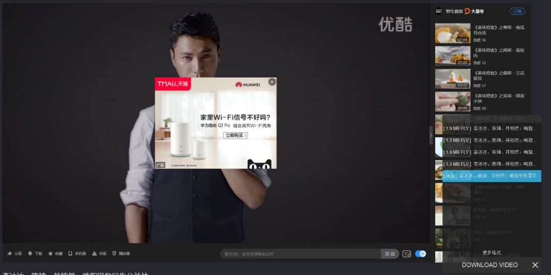 「XDM 2018」自带网页视频嗅探功能,雷锋哥在优酷随便打开了个视频,就会弹出DOWNLOAD VIDEO的按钮,里面可以下载嗅探到的视频。