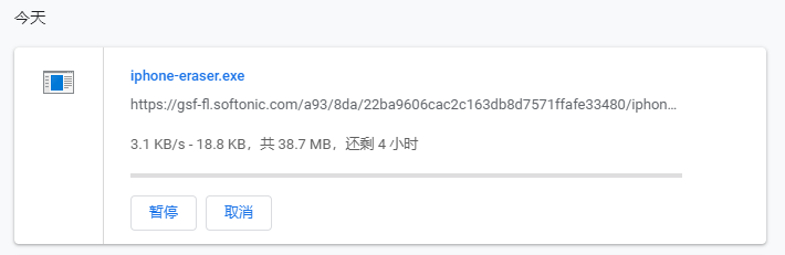雷锋哥在国外下载站找了个软件下载地址测试,用「Chrome」默认的下载速度只有3KB/s左右,需要下载4个小时 ?