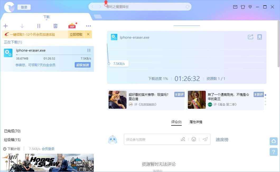 接下来在网络设置里面把下载线程数开到32,然后测试下冷门资源的下载速度。