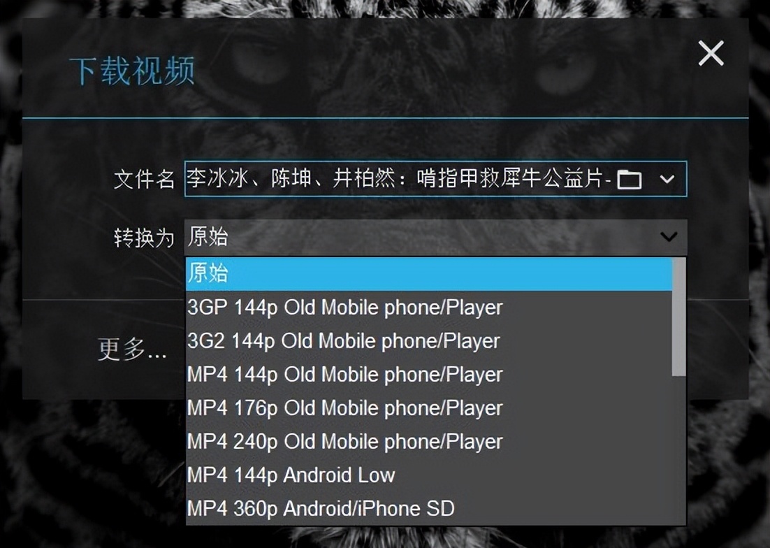 下载视频可以选择转换格式,目前支持3GP/MP4/MP3的视频格式,这样就省去另外用视频软件转换格式了。