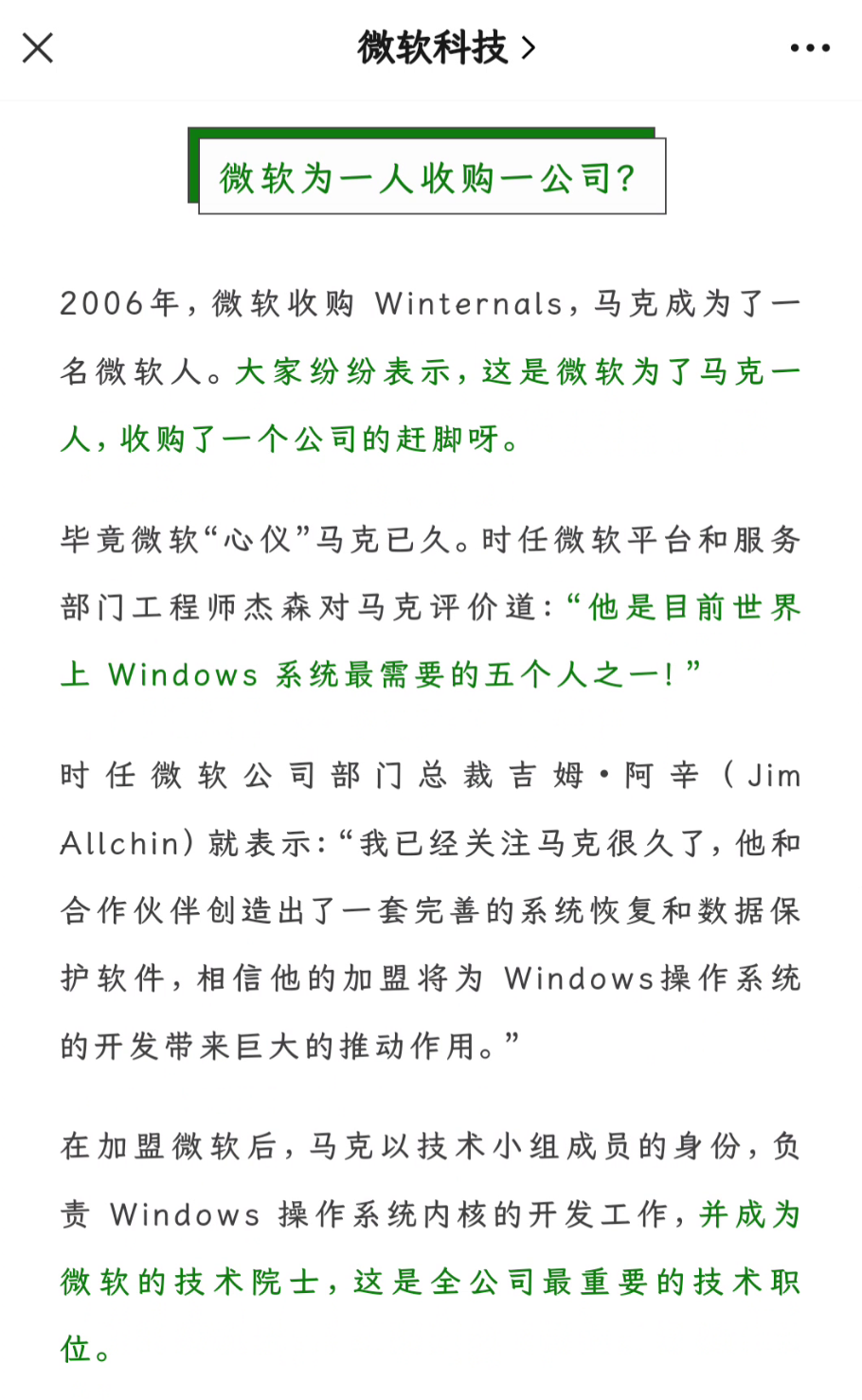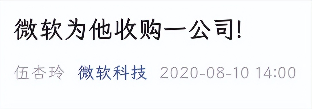 不只拥有乌黑的秀发,还技术和文艺并行发展,根据微软科技官方账号透露,微软甚至都为他一人收购了一家公司!微软高层也对他青睐有加……啊这,这不就是小说的主角吗?这种经历也是大多码农羡慕的事情吧,软件写着写着就被大公司挖走,走向了人生巅峰。