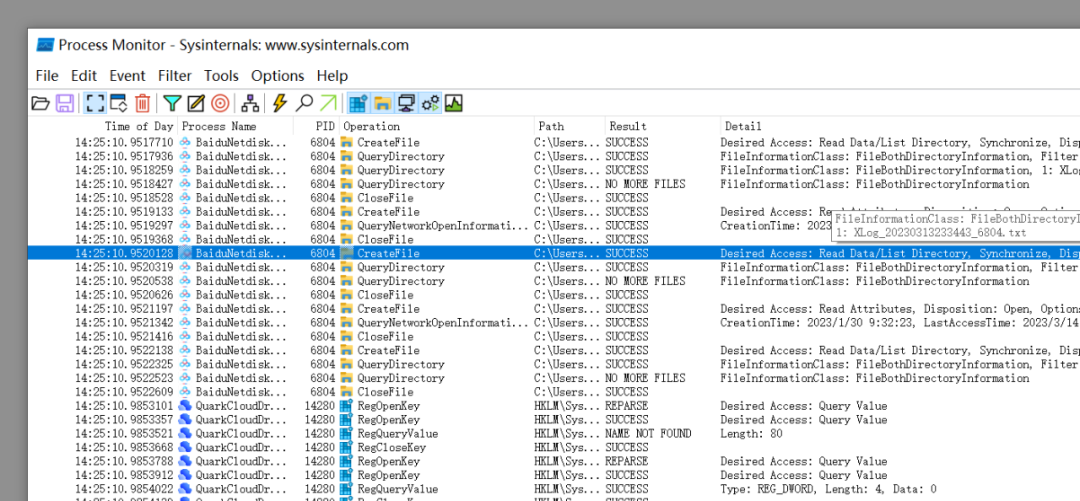 使用这个工具能很直观地看出软件在后台悄悄做了什么,像是创建了什么文件、创建的文件名字与执行结果、读取对比了哪些文件、动了哪些注册表、以及通过文件管理器访问了哪些文件等等、一举一动都可以很详细列出来。