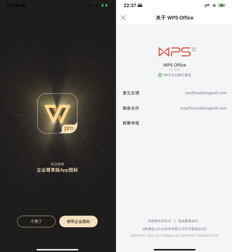 苹果版的激活后,桌面上会显示企业尊享版App图标。