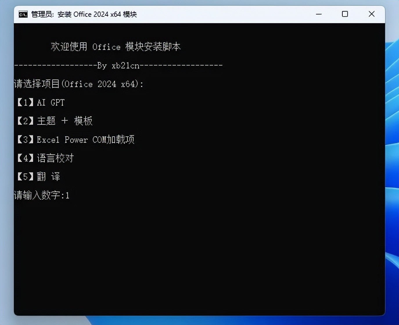 由于某些模块体积较大,并非所有人都需要,所以作者将它们制作成了模块,可以自行选择安装。只需以管理员身份运行“+)安装模块.cmd”即可。一共包含了5个模块,请自行选择需要的模块进行安装,我这里选择了一个AI GPT的模块进行了安装。