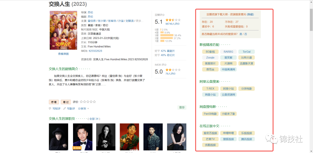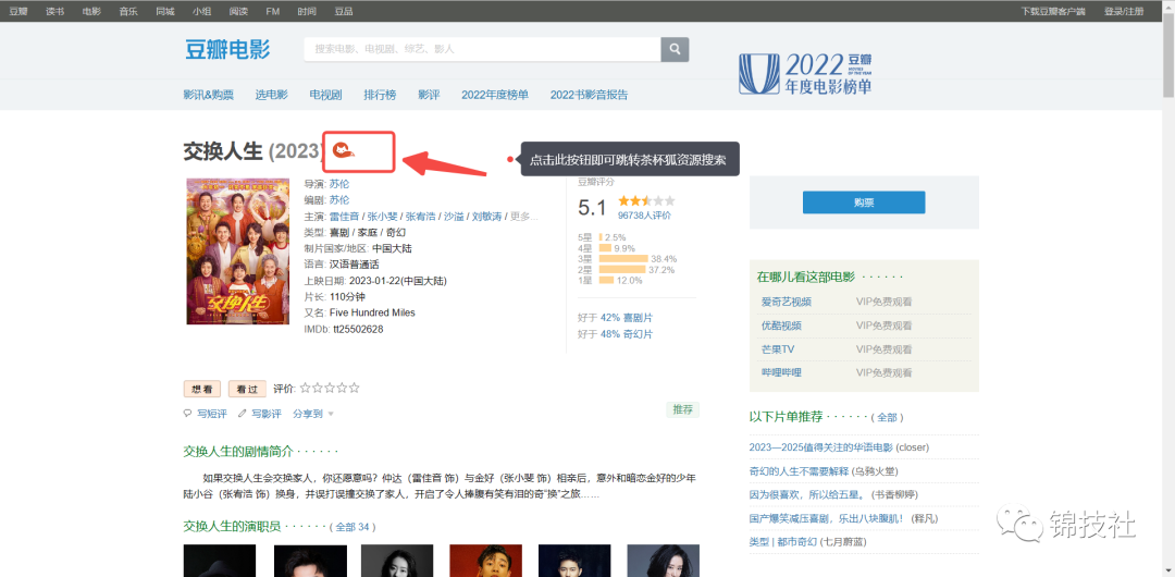 脚本简介:茶杯狐是一个影视资源聚合搜索引擎。安装脚本后豆瓣电影标题旁会显示茶杯狐的logo,点击就可以搜索影视资源了。