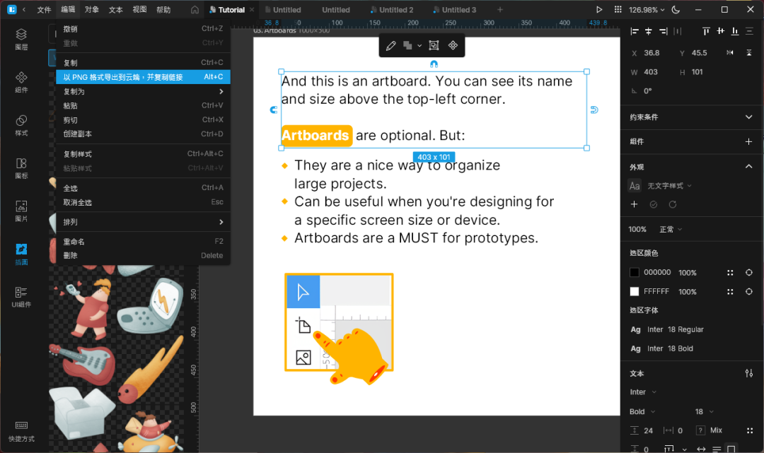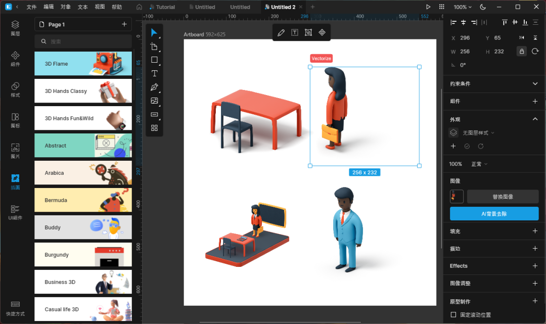 内置丰富的矢量插画,超多分类,选择你需要的插图可以直接使用到原型设计中,当然这些插画你也可以进行编辑修改,也可以单独导出图片格式。