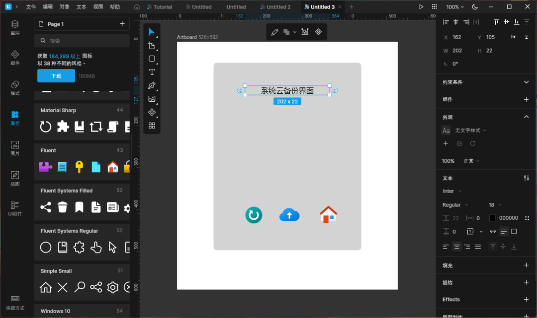内置丰富的图标类型,设计软件 UI 原型经常会用到一些图标素材,在这里你可以方便的插入,目前已经提供了 184289 个图标可以免费使用。
