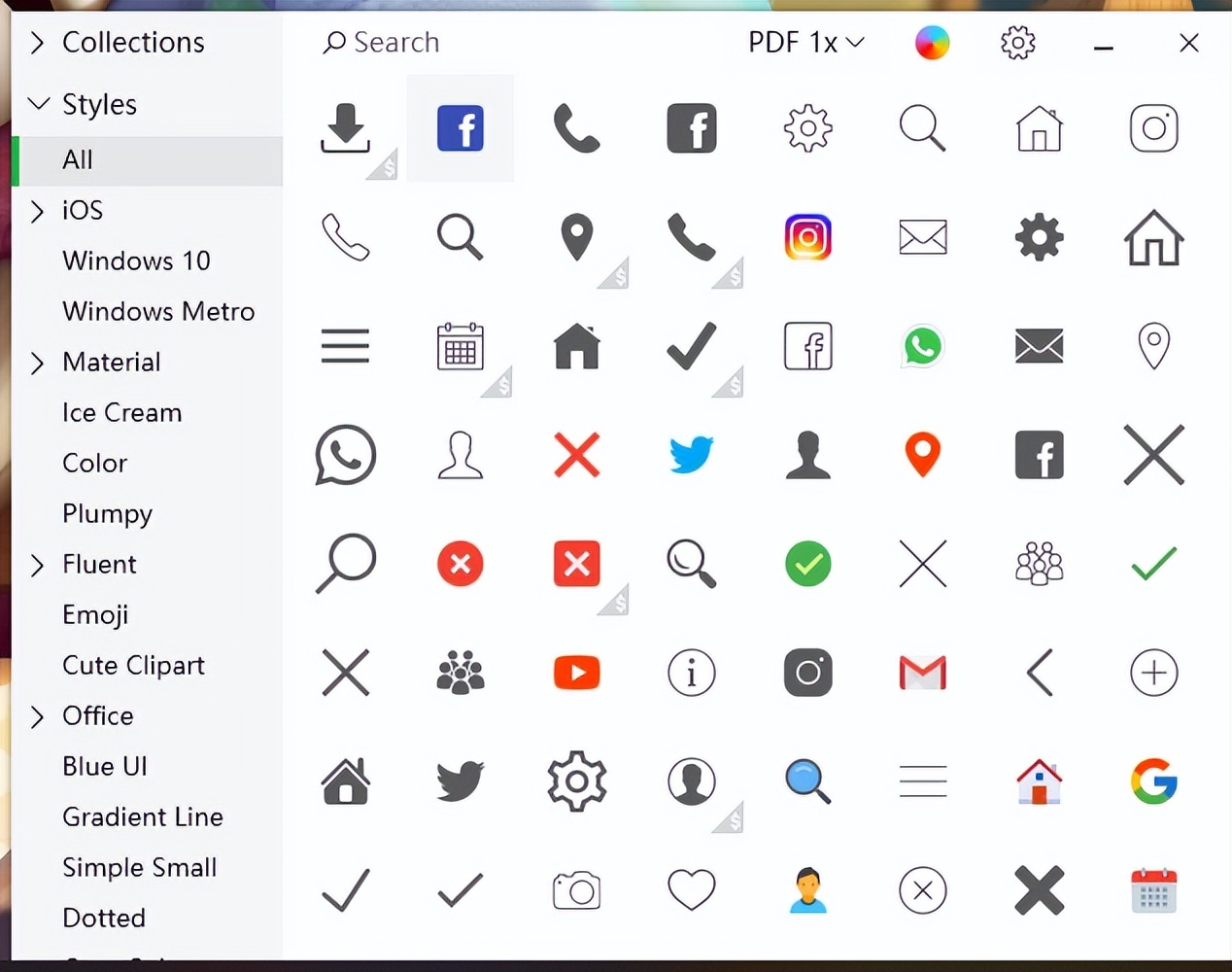 素材网站上还提供了 Native apps and plugins 插件,内置了丰富的图标素材,你可以保存到本地,或者复制后直接粘贴到「Lunacy」软件里面使用。不过目前免费版只提供了 PNG 格式使用。如果需要 SVG 格式,则需要付费吧。