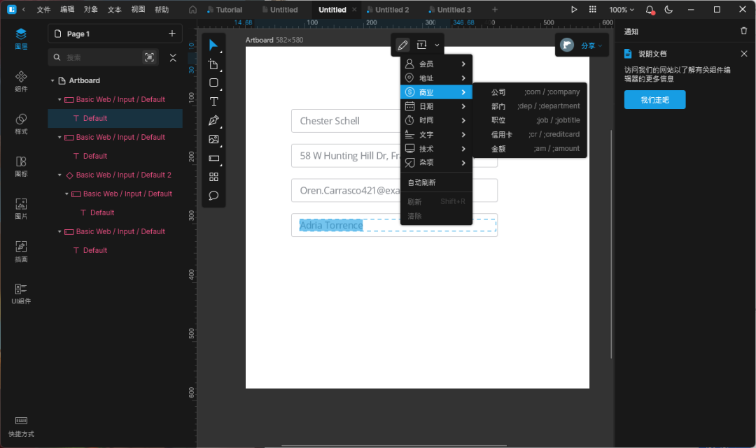 超方便的文本生成器,现在手机应用、网站基本上都会用到表单功能,例如注册账号。在「Lunacy」你可以快速选择表单项的类型,之后还可以创建为组件,方便调用。
