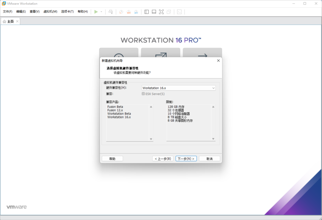 2.运行 VMware 虚拟机 – 创建新的虚拟机 – 自定义 – 选择 Workstation 16.x ,接着下一步,选择 “稍后安装操作系统” 。