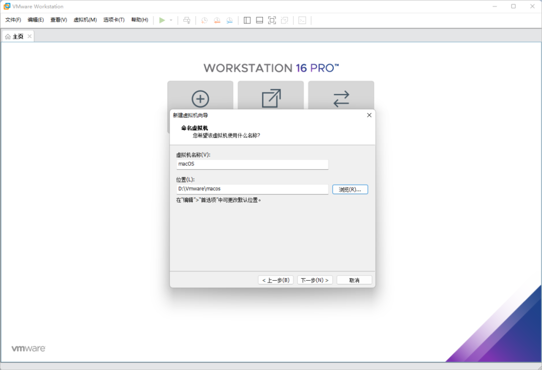 4.输入你的虚拟机名称和虚拟机保存位置,根据你的情况来设置路径就行了,接着下一步。