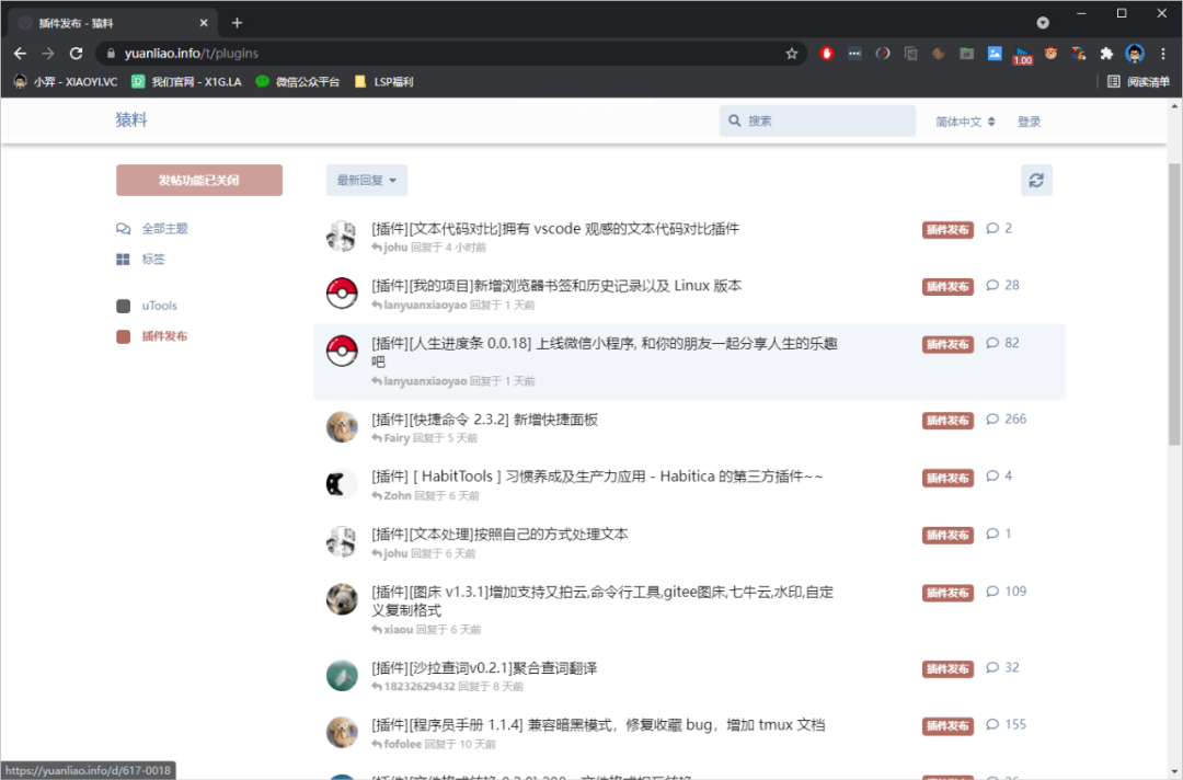 插件中心:虽然目前提供的插件不多,但都还算蛮实用的,包括有:文本对比、二维码生成、图床、斗图、词典查询等,根据你需求来安装即可。