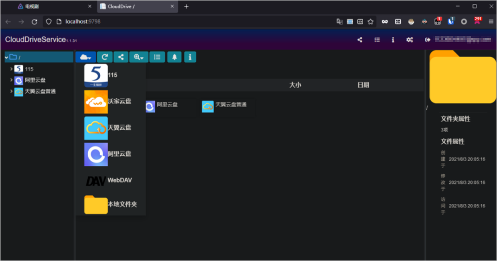目前「CloudDrive」支持115、沃云盘、天翼云盘、阿里云盘、WebDAV,平台拥有 Windows 和 Docker,适合 NAS 、 VPS等设备安装。