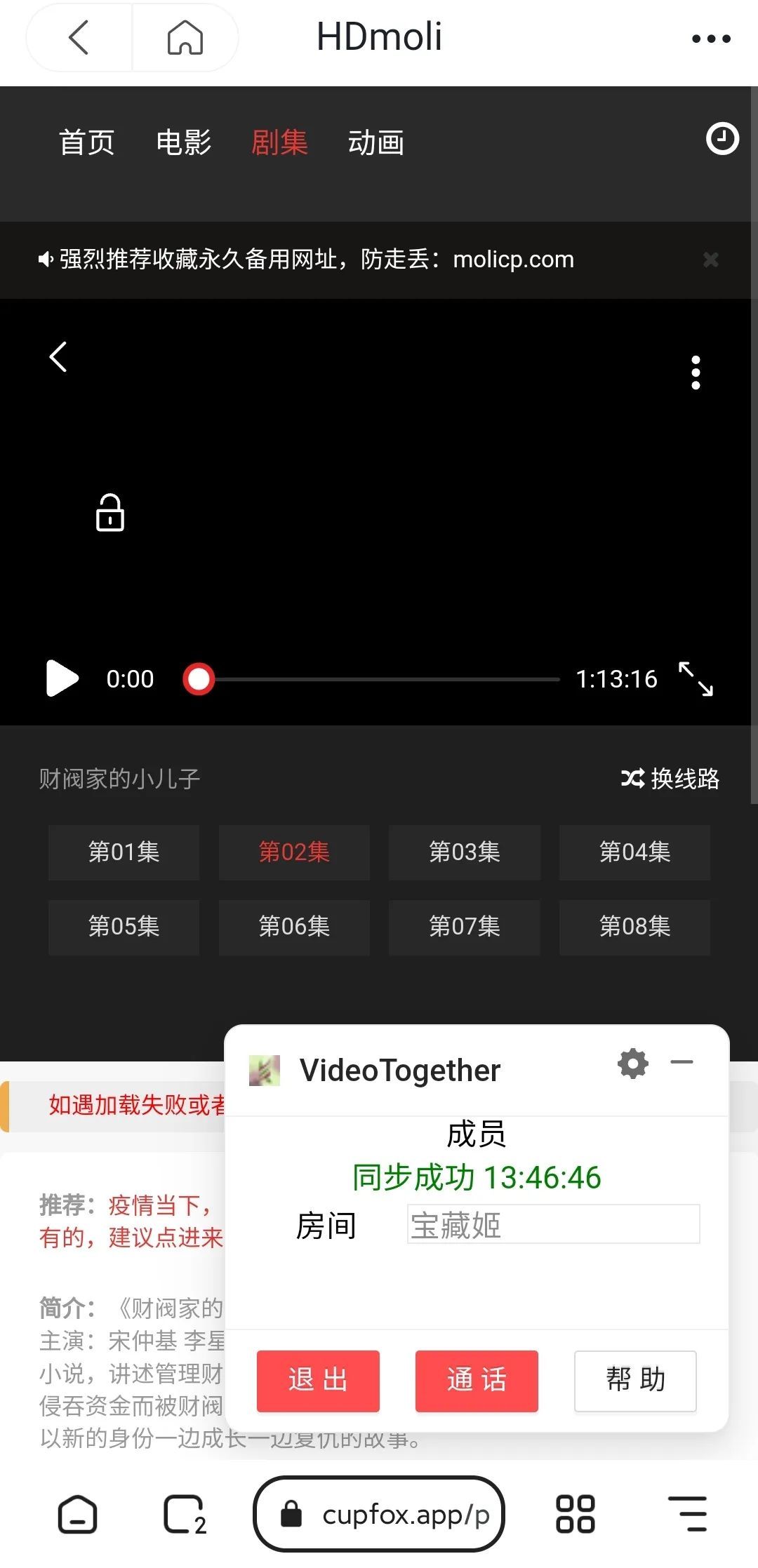 当然一起看视频的条件就是当前网页必须有视频播放,一起看电影当然少不了聊天,点击“通话”按钮就可以分享欢声笑语啦。