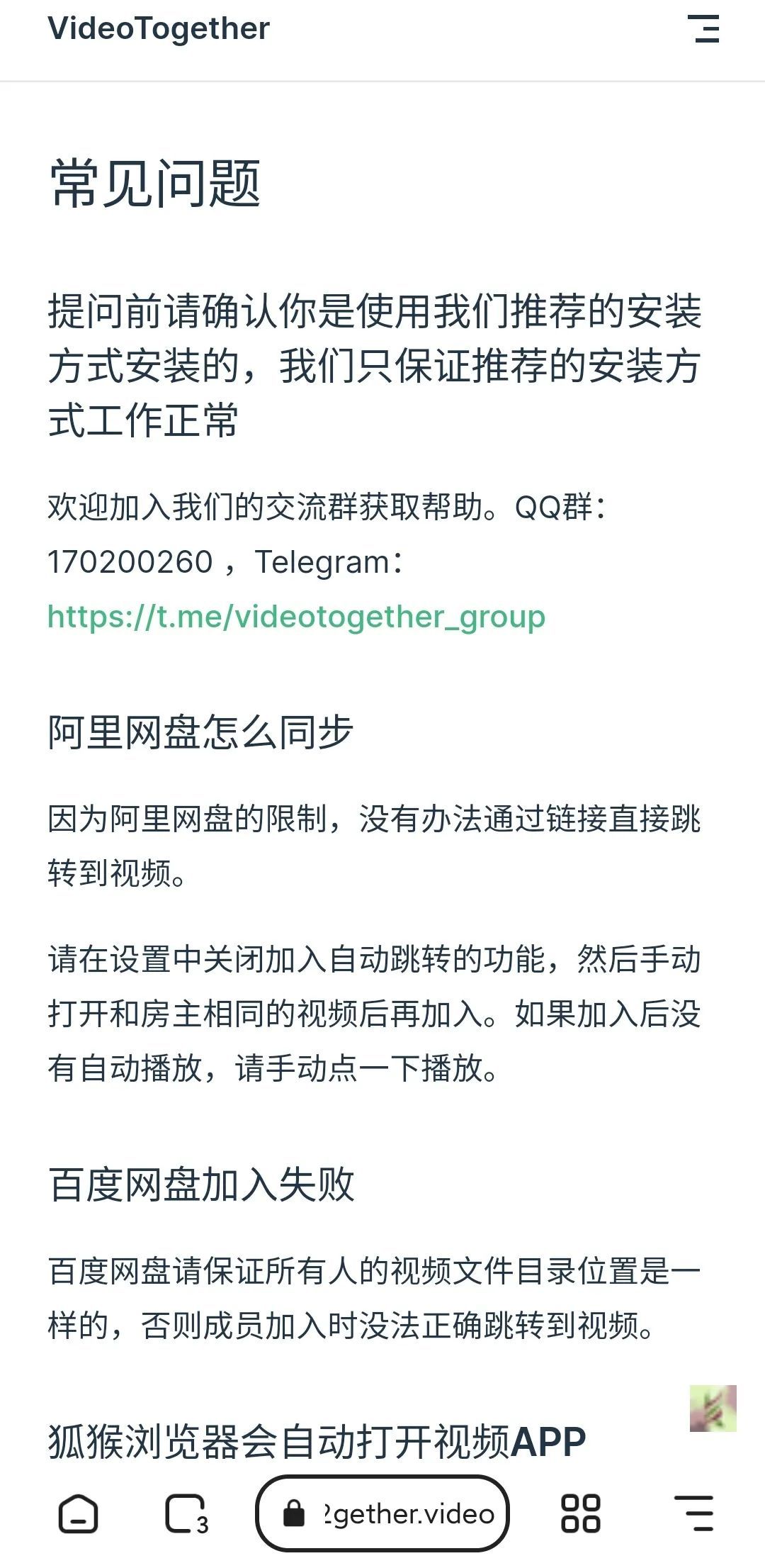 VideoTogether 还为大家贴心地准备了常见问题的帮助教程,在小窗口中点击“帮助”按钮就可以跳转到此页面。