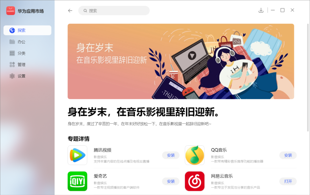 如果你实在不想用这些XX管家、XX卫士,而又希望有一款纯净无广告的软件应用市场,那么可以试试华为刚推出的 PC 应用市场。