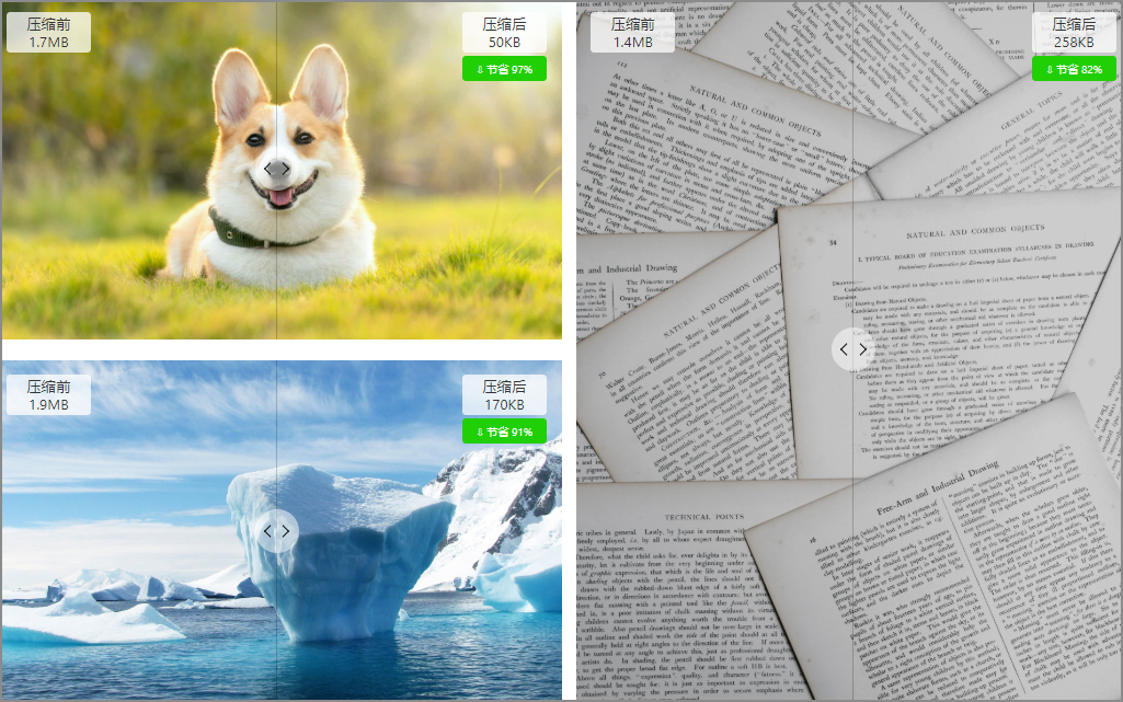 最后就是大家比较关心的压缩效果,目前大多数的图片压缩软件输出的效果都大同小异,主要是算法上的差异,要做到 “真正无损压缩” 比较难。