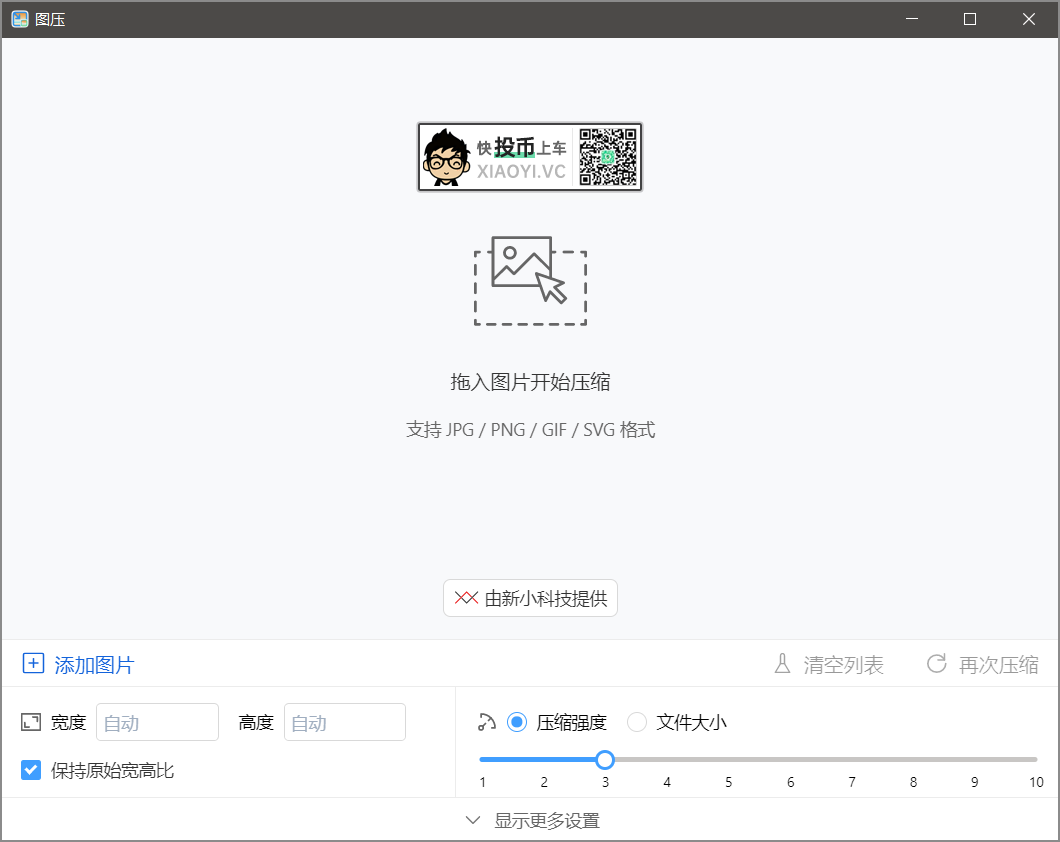 对比市面上一些其它专业图片压缩软件的话「图压」不算强大,但胜在于简单易用完全免费,支持 Windows / macOS 双平台。