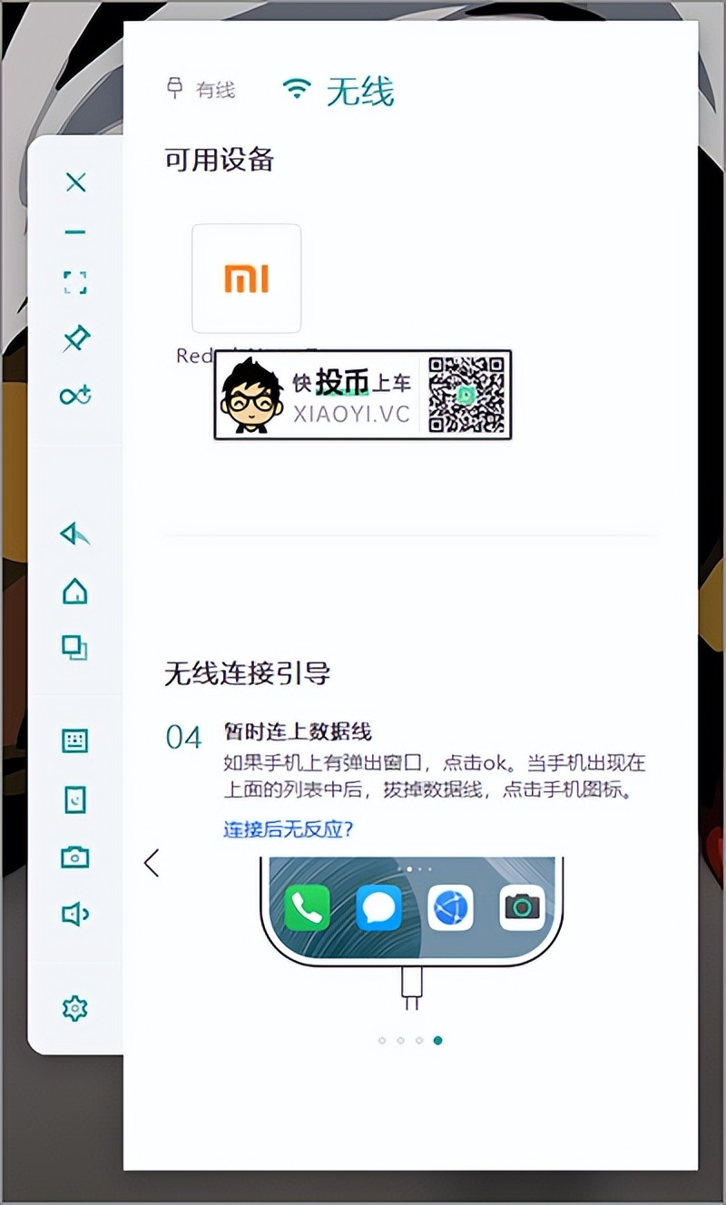 PC上的「虫洞」和安卓手机链接方式支持两种模式:有线 和 无线