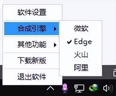 通过右下角的图标右键,可以选择合成引擎,接口设置等操作,注意,微软(和Edge差不多,一般情况使用Edge即可)和阿里需要自己申请KEY并写入设置才可以使用,Edge和火山可以直接使用。