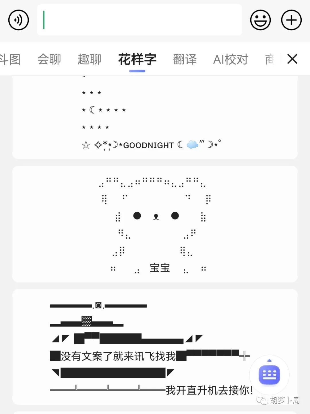 讯飞输入法除了强的 AI 语音输入之外,还有不错的「AI 聊天助手」:斗图、会聊、趣聊、AI 校对、翻译等等。