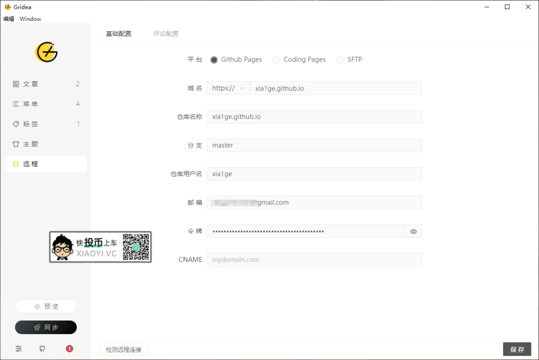 最后打开「Gridea」客户端,进入设置,把 CNAME 填上你的域名保存就OK了。