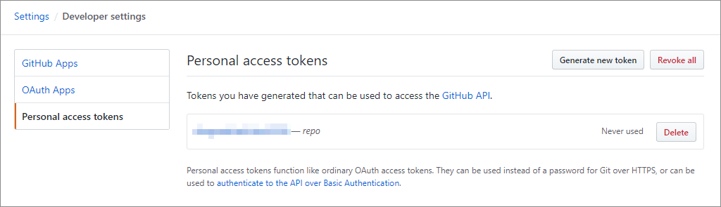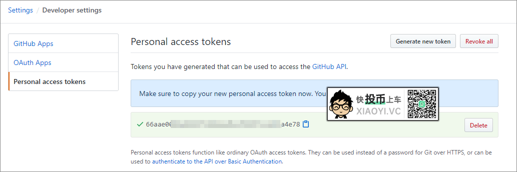- 令牌:打开 https://github.com/settings/tokens 页面,点击 “Generate new token”