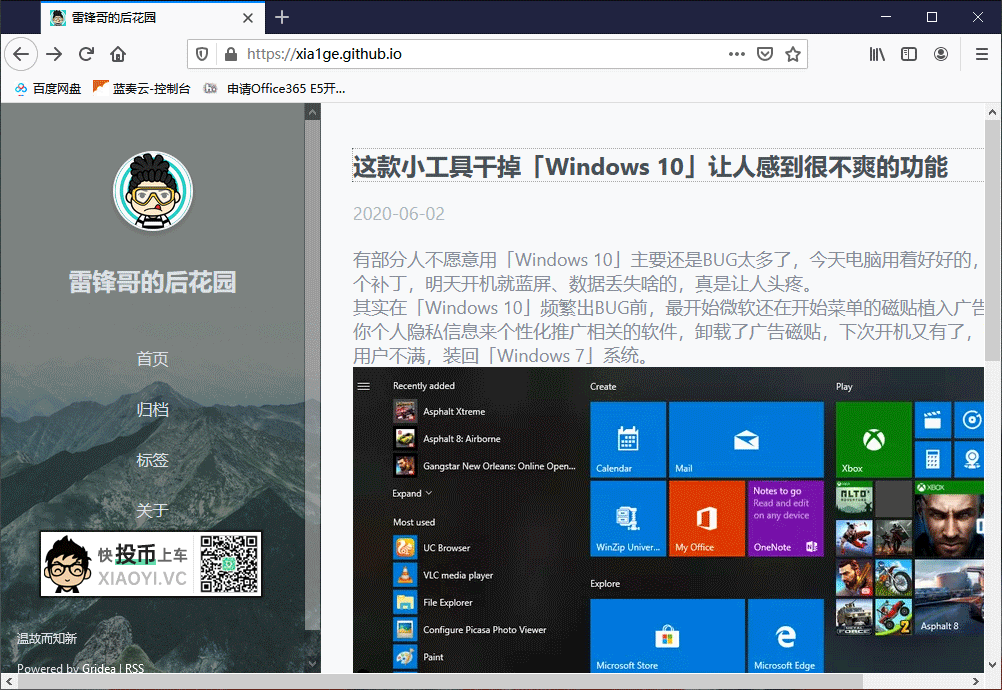 下面是发布出来的效果了,你还可以对归档页面、标签页面、个人关于页面等进行设定,这样一个属于自己的轻博客就完成啦。