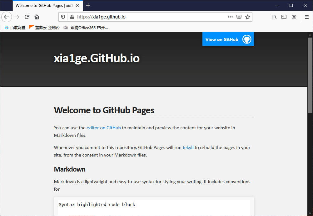 7.设置完毕后,GitHub Pages 就会生成网站了,现在访问你刚才填写的地址xxxxx.GitHub.io 就能打开了。雷锋哥这里的是:https://xia1ge.github.io