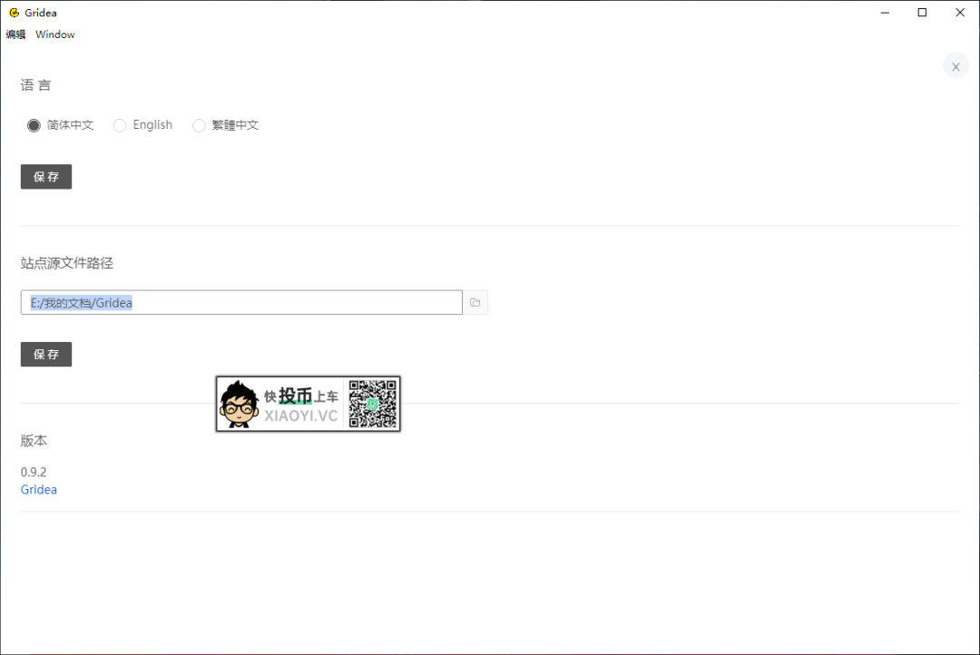 打开「Gridea」的设置,看到站点源文件路径,例如我这里是:”E:/我的文档/Gridea” 位置。